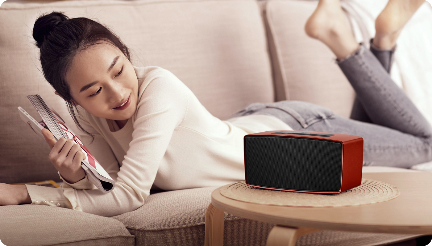 配合超大口径双被动振膜,输出功率可达10W,采用经典的侧面直出音设计,相比圆柱形设计的智能音箱产品,声音更干净通透,避免了声音经过反射锥反射对音质的损失;配合经专业优化的2000CC大尺寸音腔,中高频清晰亮丽,低频厚实有力,带来真实、饱满的声场表现力
