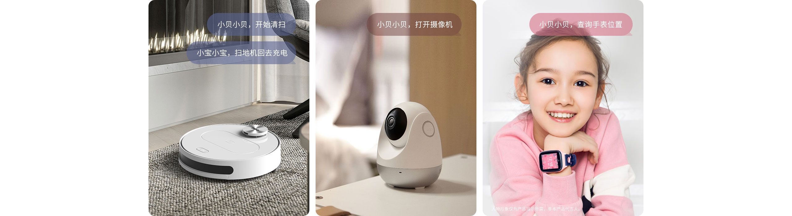 动扫地机、查询儿童手表位置、开关家庭摄像头。